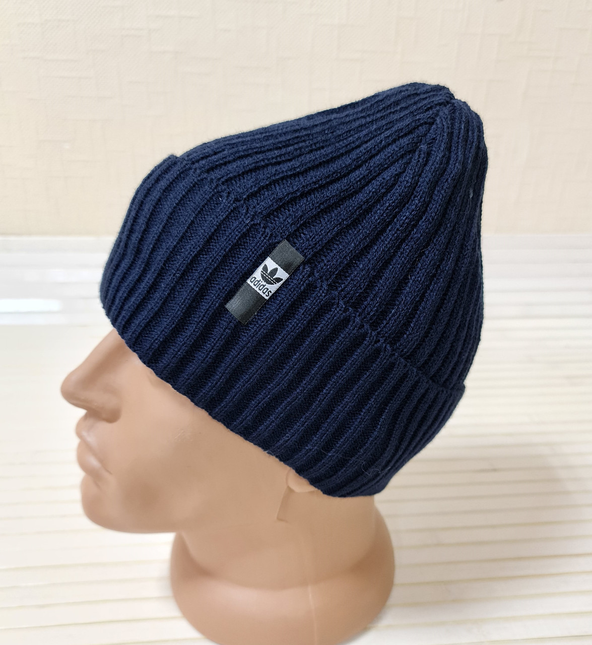 Шапка чоловіча тепла грубого в'язання з флісовою підкладкою з закотом темно-синій