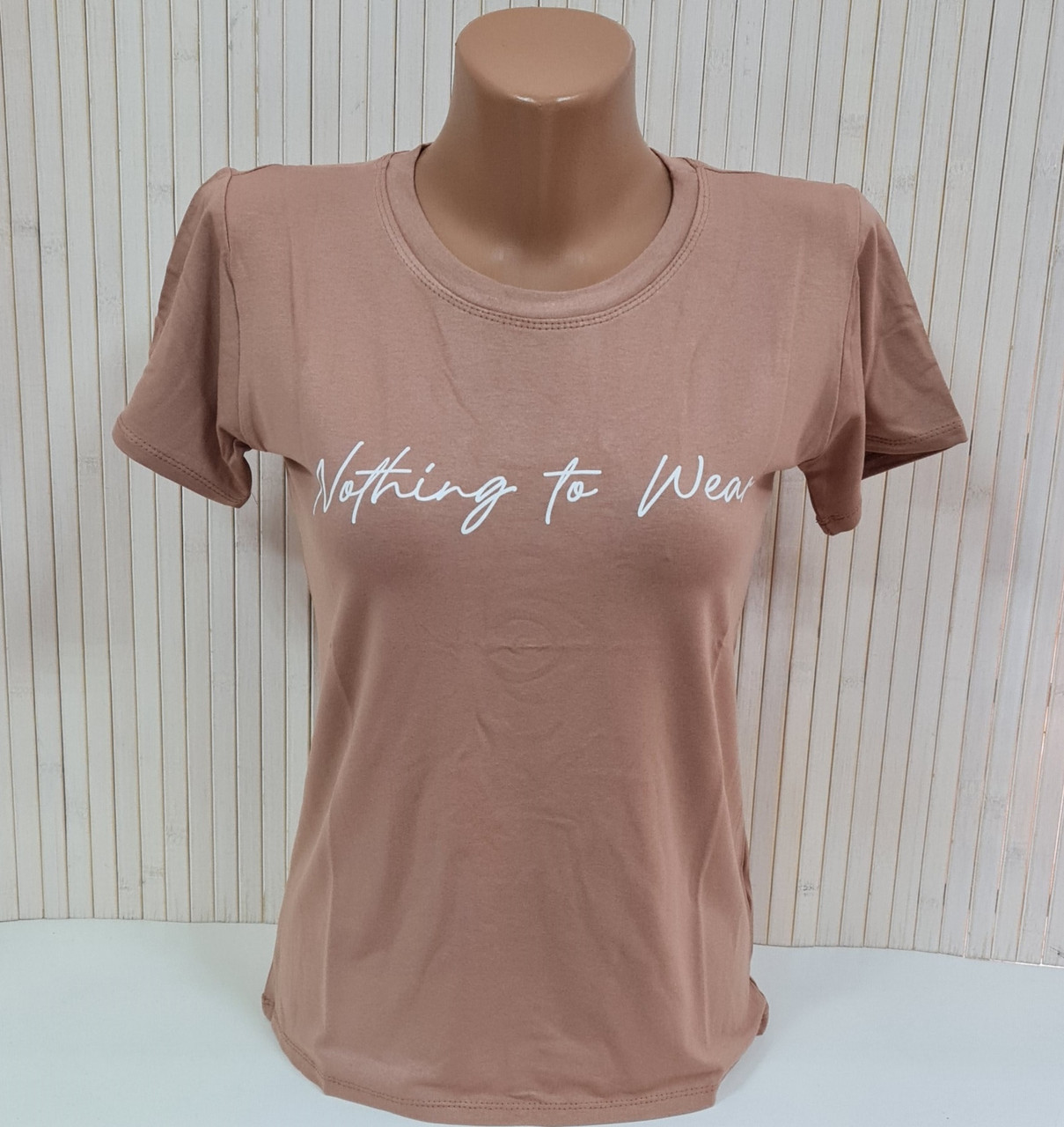 Футболка жіноча з написом і принтом віскоза з круглим коміром капучино