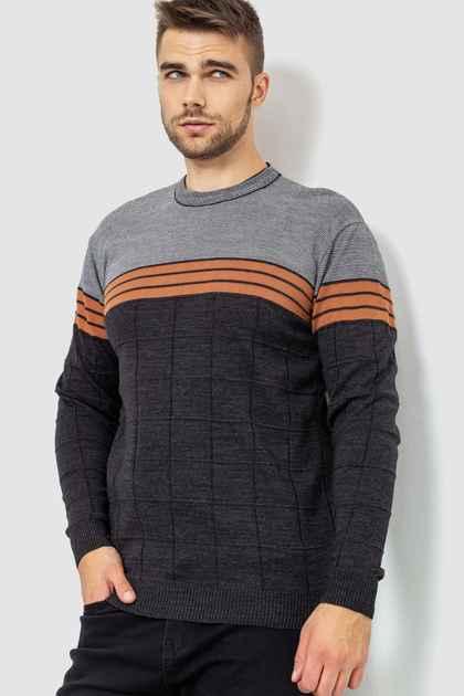 Светр чоловічий Triko демісезонний з круглим коміром у смужку сірий
